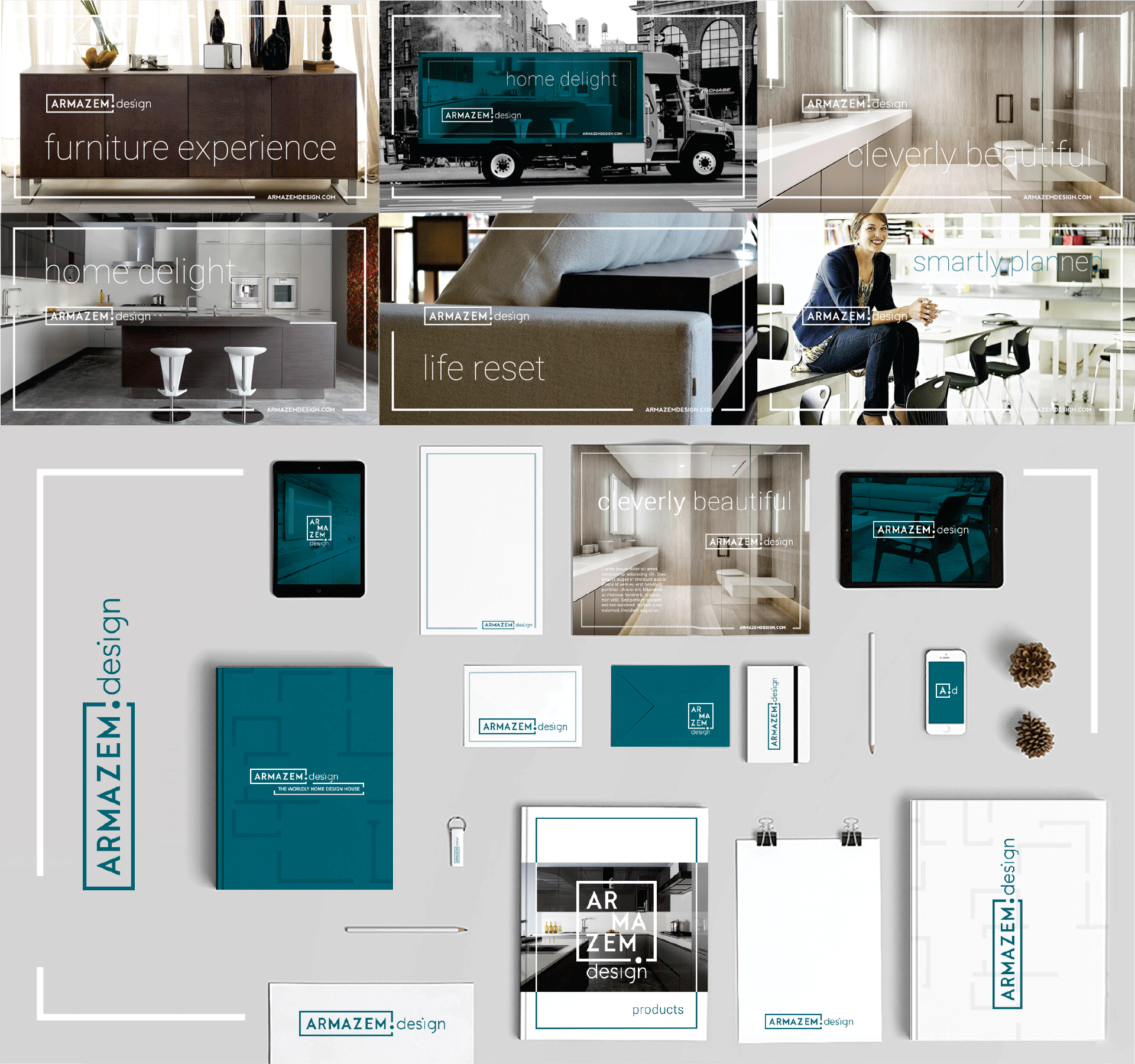 Nosso desafio neste projeto foi criar uma marca capaz de expressar a missão da ARMAZEM.design de forma descomplicada, com uma linguagem sofisticada, leve e moderna. Onde tanto a qualidade dos móveis quanto o aspecto de inovação, versatilidade e exclusividade fossem destacados sempre.