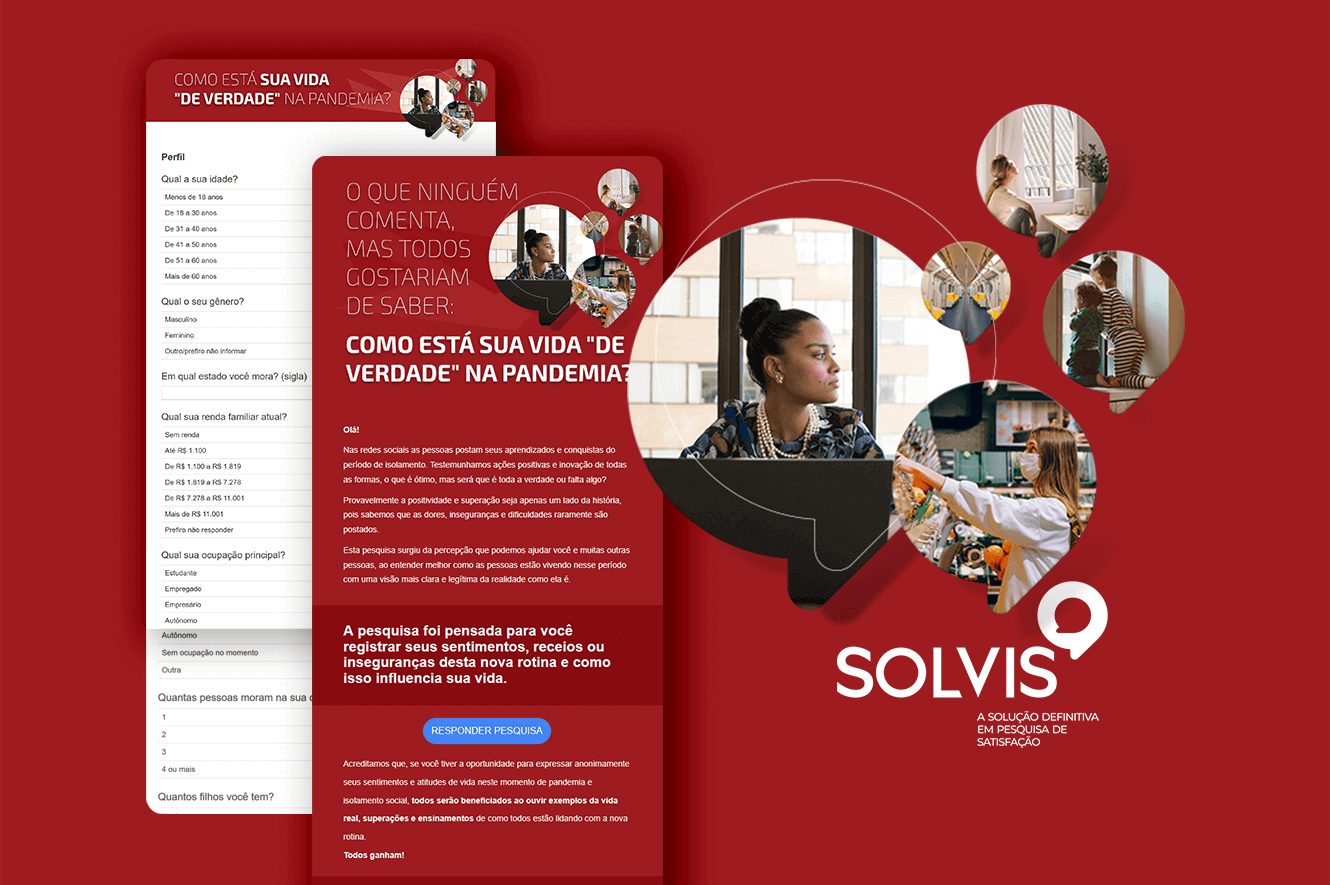 Hoje trouxemos para você um exemplo muito legal, uma iniciativa liderada pela Solvis, especialistas em pesquisas de satisfação, e abraçada por diversas marcas e empresas, pelo bem das pessoas, dos comércios e do Brasil. A gente explica melhor no texto abaixo, mas se trata de uma das maiores pesquisas sobre o comportamento e a vida das pessoas nesse novo cenário de pandemia, e antes de tudo, queremos te convidar para responder e ajudar nessa causa:
